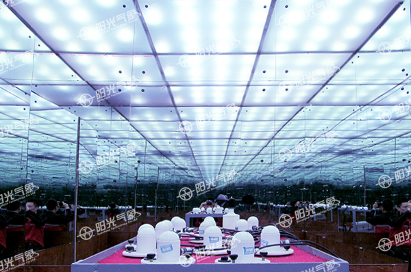 人工天穹,利用穩(wěn)定的LED燈矩陣組,分組控制,達到亮度一致均勻,通過高透光率的擴散膜進一步均勻擴散。達到平面鏡做的四個內(nèi)立面后經(jīng)過多次反射,使天空亮度滿足國際照明學(xué)會標(biāo)準(zhǔn)全云天空亮度分布或均勻亮度分布。