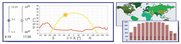 可以針對不同的建筑、不同時間段進行模擬計算軟件中采用動態建筑模擬,考慮到建筑所有相關的參數,包括幾何結構、方位和熱質,提供詳細的隔熱數據;同時軟件在計算中,由定位坐標和地平線共同確定太陽的位置,每四分鐘更新一次,因此甚至可以專門針對某小時、某天或者某段時期內的太陽能系統進行模擬計算;
