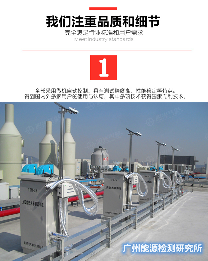 多年來錦州陽光氣象科技公司建設了眾多太陽能檢測中心,均都通過了CNAS認證,得到了認可. 我們根據多年研究太陽能熱水器檢測設備的經驗,結合了檢測技術,現推出先進的網絡化太陽能測試系統, 可滿足廣大太陽能熱水器生產廠,質檢所,檢測中心,科研教學等領域的使用。
