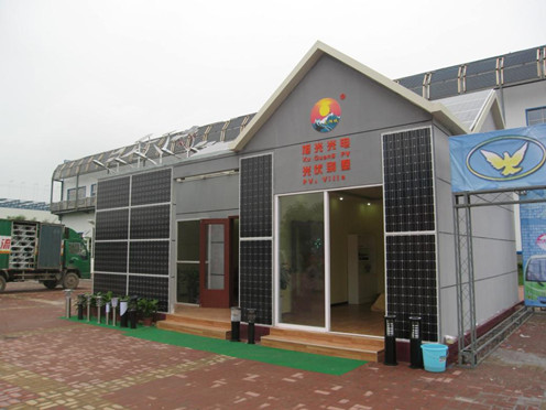 太陽電池組件最小輸出功率大于15 Wp;數量:33塊,安裝于太陽房南墻外表面,裝飾與發電一體.