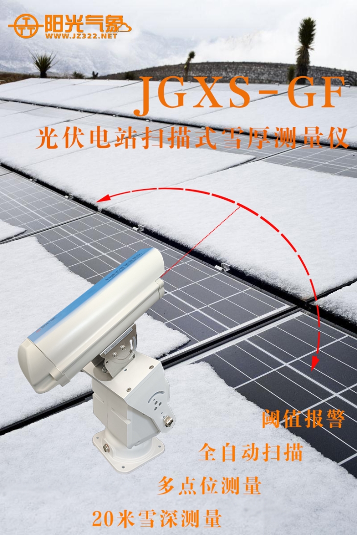 進入冬季,光伏電站如果遇到雪天,光伏板上就會積雪,雪的存在會使太陽光被反射,從而使得光伏板的發電量受到影響。雪重也會增加光伏組件的承重,可能造成光伏組件的變形或損壞,影響光伏組件的壽命和性能。此外,積雪也會使光伏板表面溫度下降,從而減緩電流的流動速度,造成電流的輸出不穩定。因此,雪天對光伏發電的影響是復雜的,及時準確地監測光伏組件表面的積雪情況是非常必要的。JGXS-GF光伏電站掃描式雪厚測量儀是我公司新研發的一款專門針對光伏電站組件表面積雪厚度進行動態測量的儀器。