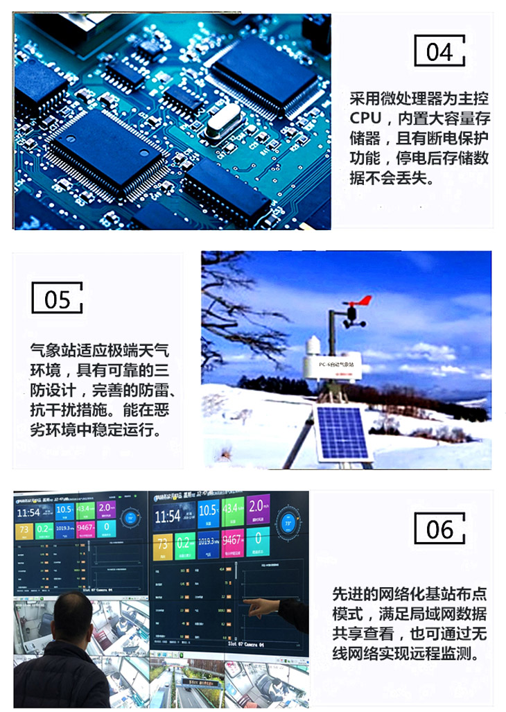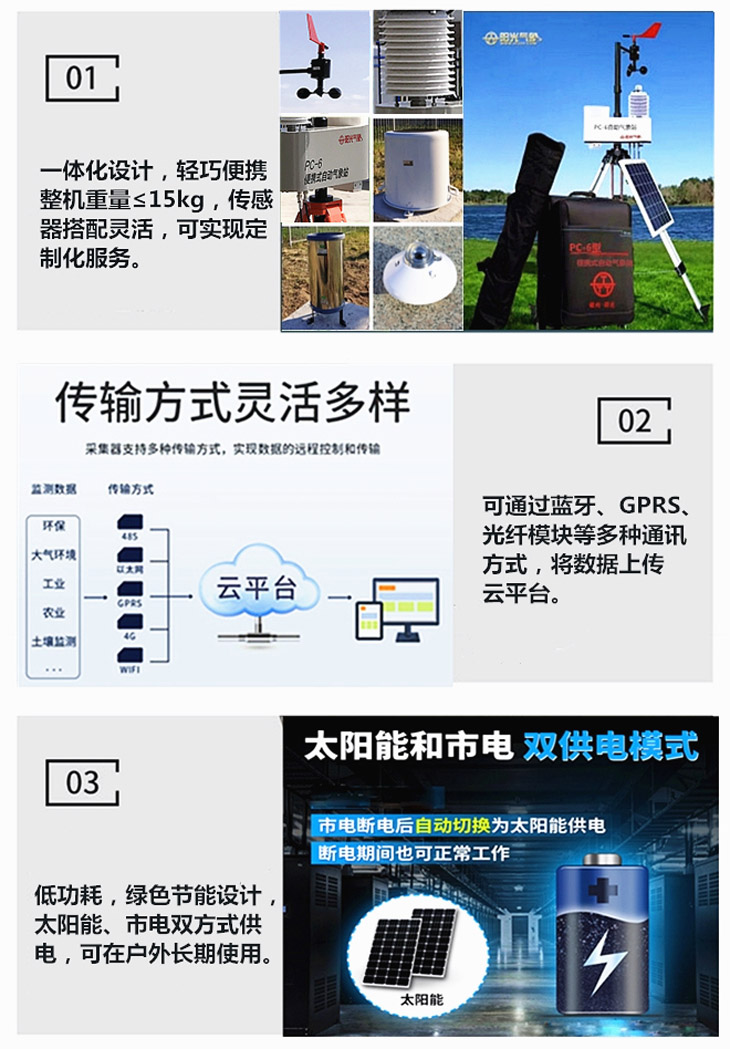 PC-6型便攜式陽光氣象站是非常便捷的氣象觀測站,核心監(jiān)測部分整體重量不超過5KG,高度集成,體積小巧,攜帶方便,是一款性價比突出的小型自動氣象站。