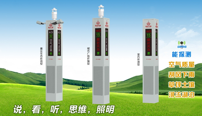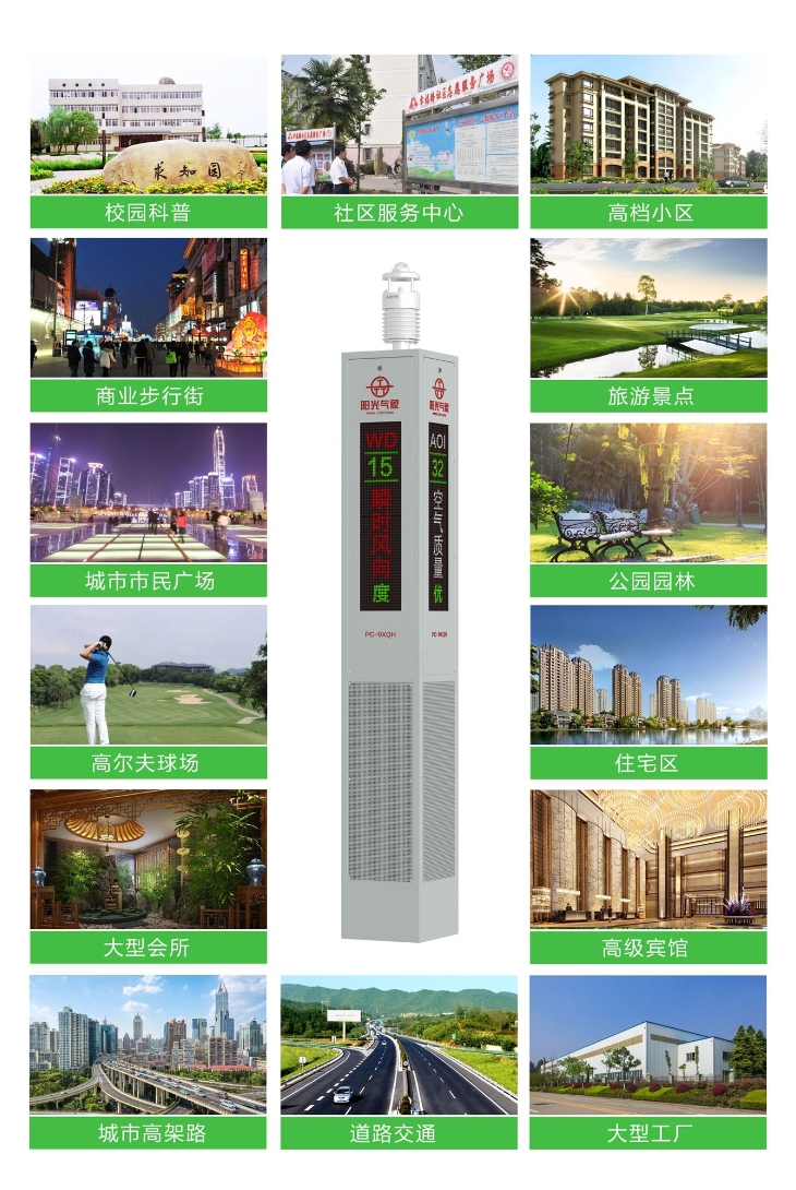PC-9XQH 景區(qū)氣象站以“物聯網+智慧感知”為核心,建立覆蓋全區(qū)域的環(huán)境空氣質量自動監(jiān)測網絡,并實時顯示播報。景區(qū)氣象站由金屬外殼立柱、氣象環(huán)境傳感器、系統采集主機、LED顯示、智能語音播報、物聯網云平臺數據存儲、終端顯示組成。