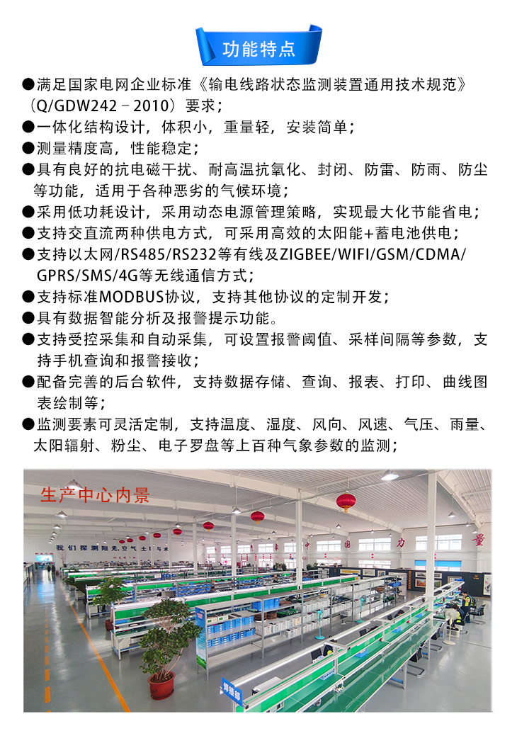 高壓輸電線路微氣象在線監(jiān)測系統(tǒng)是為滿足輸電線路局部氣象環(huán)境監(jiān)測需要而自主研發(fā)的、擁有全部知識產(chǎn)權(quán)的多要素微氣象監(jiān)測預警系統(tǒng),輸電線路微氣象在線監(jiān)測系統(tǒng)集數(shù)據(jù)采集、存儲、傳輸和管理于一體,可實時采集環(huán)境溫度、濕度、風速、風向、氣壓、雨量、太陽輻射等氣象參數(shù),并通過RS485/WiFi/GPRS或4G網(wǎng)絡將監(jiān)測信息發(fā)送至遠程監(jiān)控中心,或傳輸給視頻監(jiān)控設備,實現(xiàn)二次集成。當出現(xiàn)異常情況時,系統(tǒng)會以多種方式發(fā)出預報警信息,提示管理人員對報警點予以重視或采取必要措施。