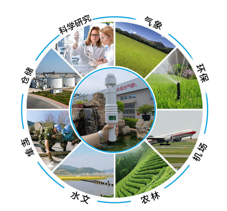 全金屬材質使該款產品可以長期暴露在戶外,不受惡劣天氣狀況影響,高度集成的電子電路設計使小巧的體積下蘊含了傳統設備數倍重量的功能,為氣象觀測戶外作業帶來了更多方便。這款產品可廣泛應用在農林業,航空航海,車載觀測,應急救援,軍事氣象,現場移動氣象觀測等各個領域。