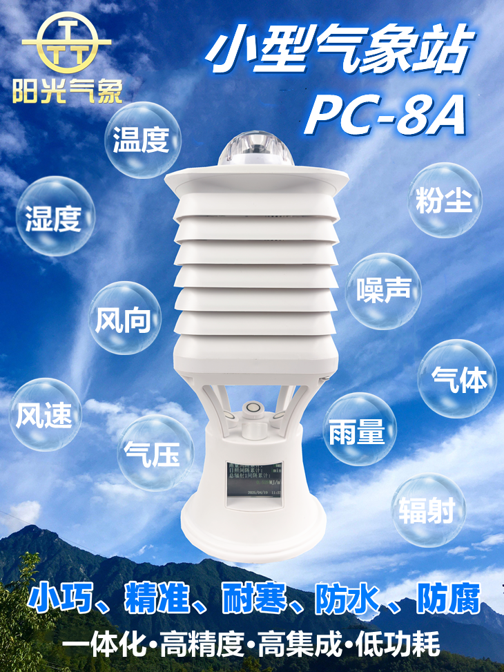 PC-8A小型氣象站是錦州陽光氣象針對各個行業(yè)多場景氣象監(jiān)測研發(fā)生產(chǎn)的一款最新型一體化/小型/多功能的環(huán)境監(jiān)測設(shè)備。該設(shè)備不僅沿襲了公司傳統(tǒng)產(chǎn)品的高精度、高穩(wěn)定性、安裝使用方便等優(yōu)點(diǎn),最主要的特點(diǎn)就是在一體化小型氣象站的基礎(chǔ)上增加了顯示屏功能,可以實(shí)時查看數(shù)據(jù),外形美觀又不失專業(yè)性。
