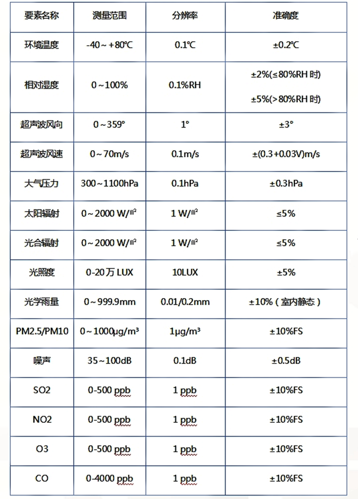 1. 一體化結(jié)構(gòu)設(shè)計(jì):采用一體化設(shè)計(jì),實(shí)現(xiàn)了太陽輻射、溫度度、風(fēng)速風(fēng)向、氣壓、降雨量、氣體、噪聲粉塵等多種要素同步監(jiān)測。同時設(shè)備支持定制,可根據(jù)需求增減監(jiān)測要素。