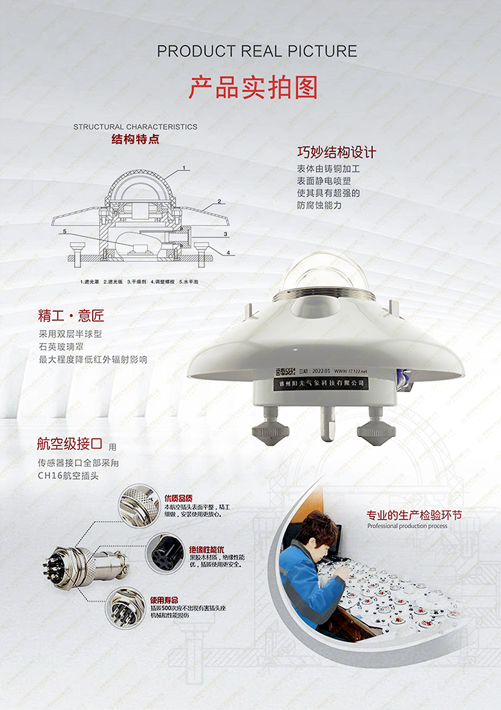 我公司生產(chǎn)的TBQ-2太陽(yáng)總輻射表是根據(jù)熱電效應(yīng)原理,用來(lái)測(cè)量光譜范圍為0.28-3.0μm太陽(yáng)總輻射(亦可用來(lái)測(cè)量入射到斜面上的太陽(yáng)總輻射)的感應(yīng)元件。它有耐腐蝕能力強(qiáng),精度高等特點(diǎn)。