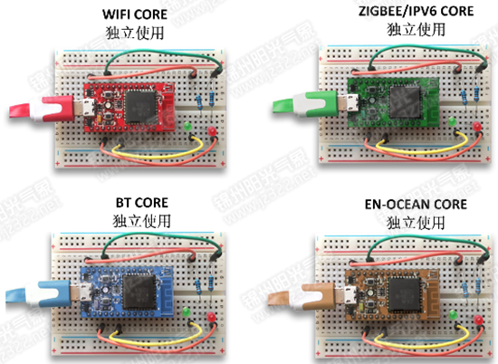傳統實驗箱只包含一種ZIGBEE 無線組網,YG-IOTV3引入多種國際主流無線傳感網技術,除了包含ZIGBEE 無線組網,還包含藍牙無線組網,WIFI 無線組網和EN-OCEAN無線組網。并且每個無線通信模塊可以獨立運行。