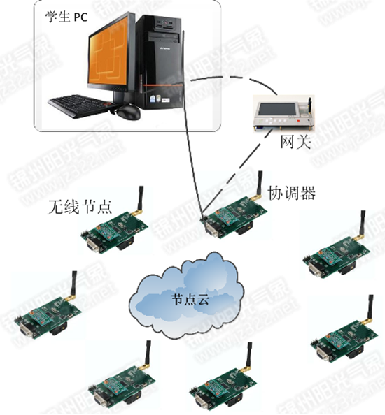 對單個學生,可以有不同無線節點構成"節點云",學習過程主要側重于無線組網協議,學習無線組網協議的架構,原理及代碼實現。簡單組網,可以直接由協調器直接連接學生計算機,通過編程環境實現組網協議學習,也可以通過網關實現組網連接,并在網關上實現基本人機交互。