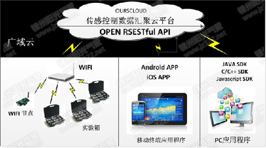 | 廣域云 | 基于部署在公有云上的服務接口,學生設備通過HTTP的RESTful API就可以實現廣域傳感網數據傳輸,結合我們提供的Android和ISO的APP就可以非常方便地實現遠程傳感網數據交互。基于云平臺我們還可以實現云固件程序下載和云端編程。 |