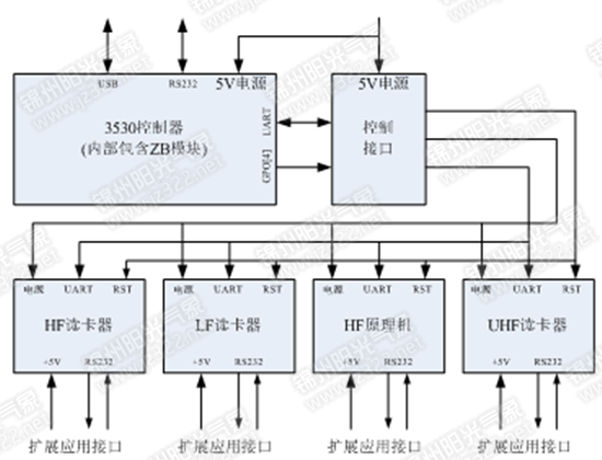 | 通用供電通信底板 | 通用供電通信底板為整個RFID系統中的各個模塊提供供電,同時完成各個功能單元的通信連接,通信底板預留多個插接口,各個模塊可隨意插接,無需人為干預或編號,系統會自動識別當前所連接的各個模塊。 |