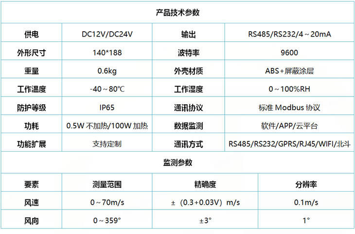 EC-A2型超聲風速風向儀